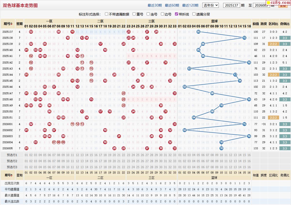 006期福彩双色球近期走势图分析