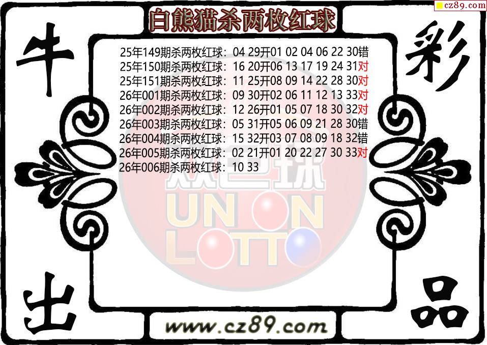 双色球006期 白熊猫杀两枚红球图迷