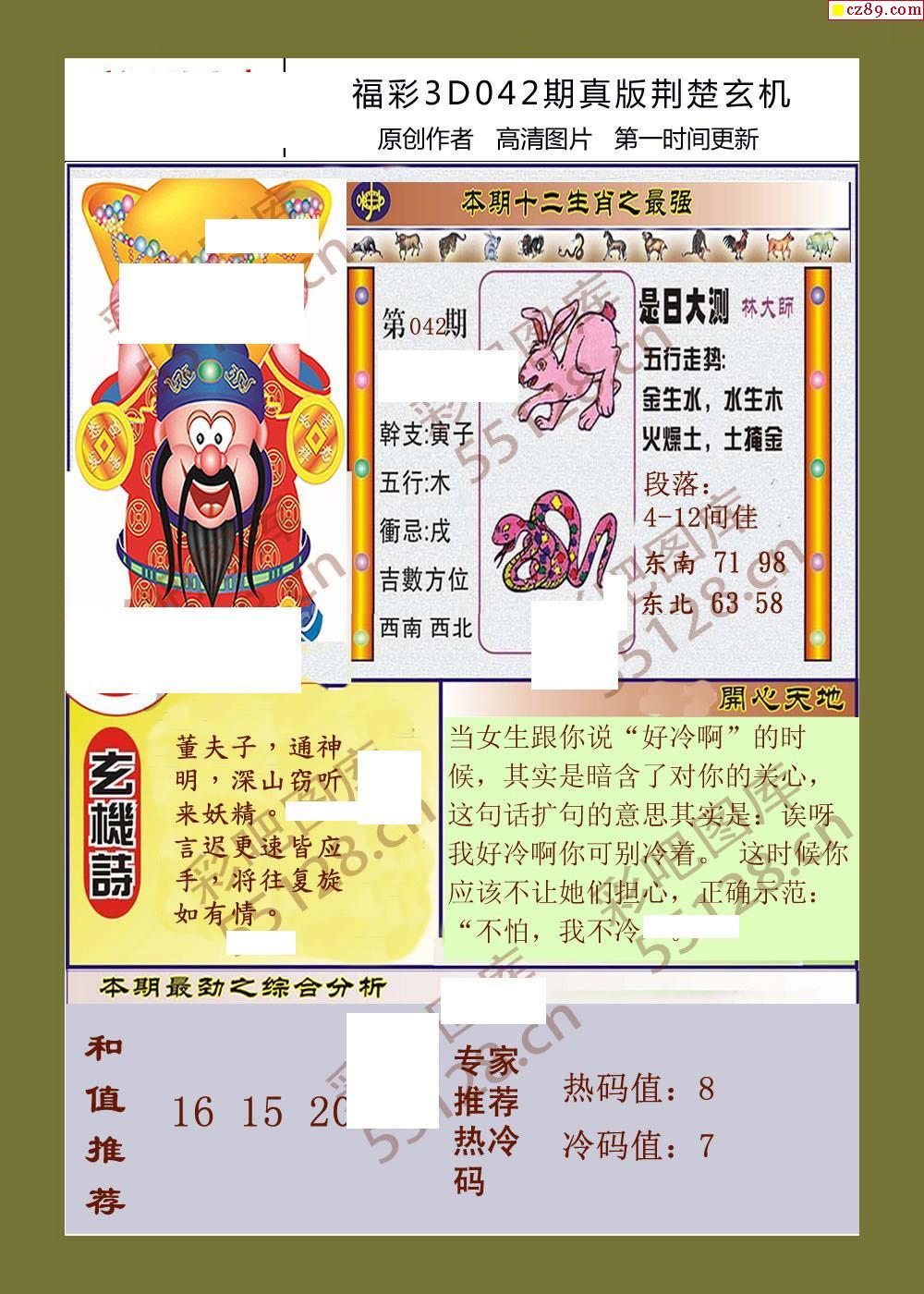 26福彩3d042期真版荆楚玄机彩报
