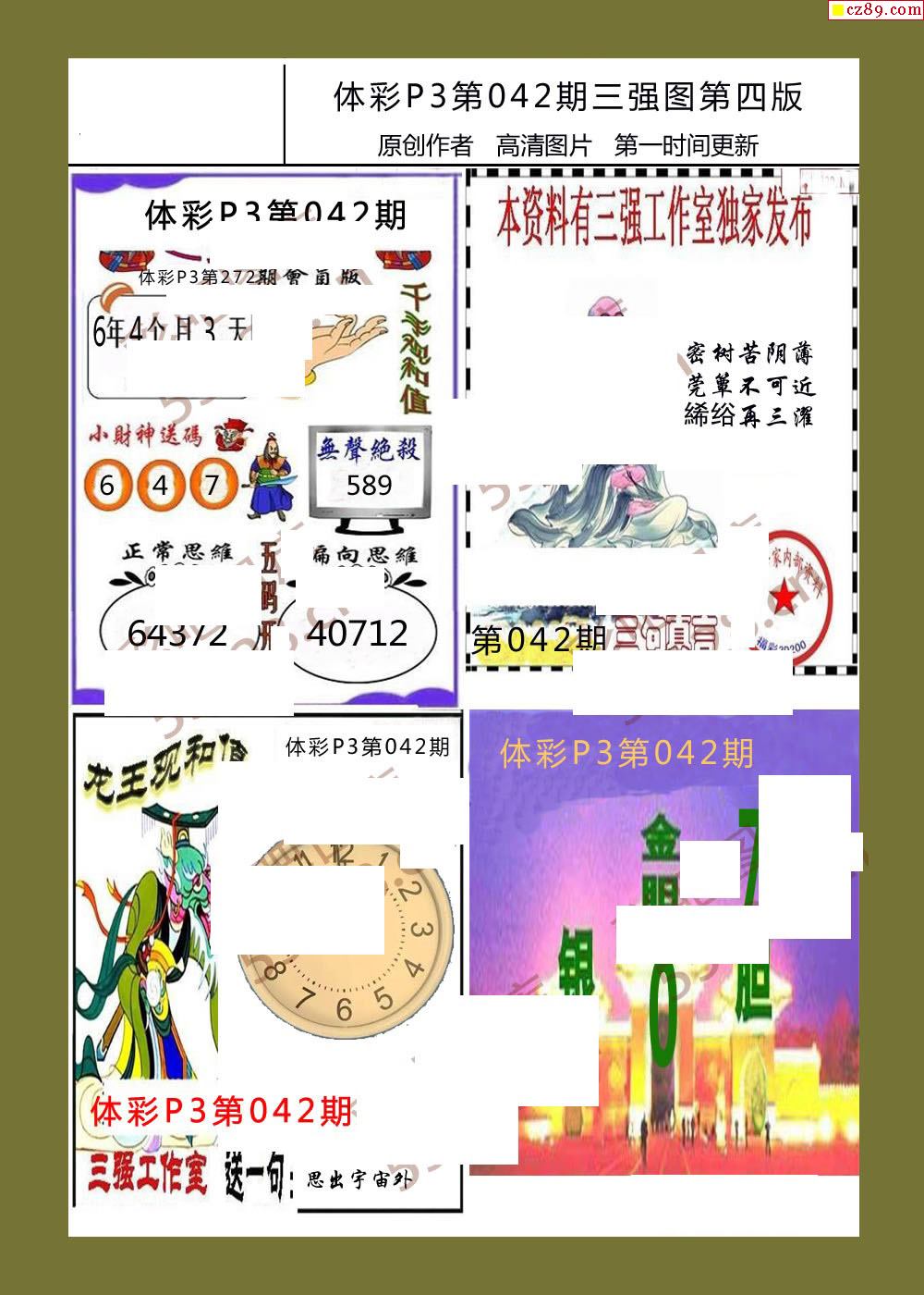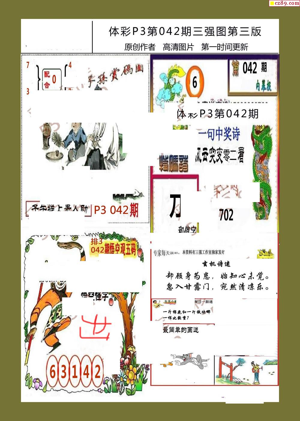 三强图系列042期体彩p3图谜